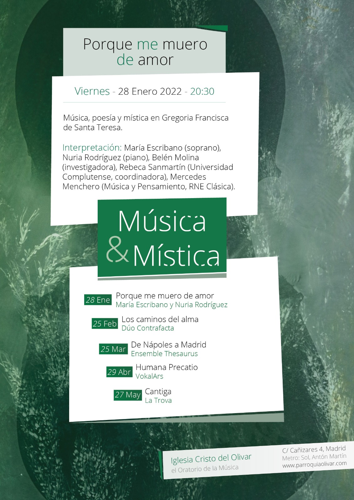 Recital de poesía en el que confluyen las voces de nuestros grandes autores clásicos reflexionado -desde diferentes ángulos, estilos literarios y posicionamientos vitales- sobre el sentido de la vida y la trascendencia. Voces diversas que, no obstante, apostaron todas por el lenguaje del amor para intentar nombrar lo inefable y para hallar un resquicio a la belleza en las leyes insondables de la existencia.